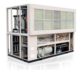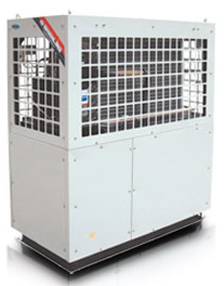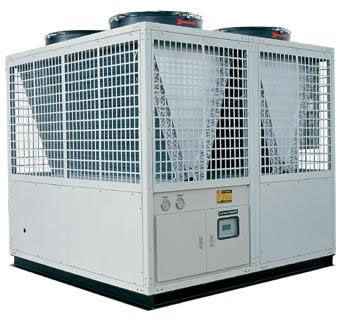 渦旋式風冷冷水機是以空氣為冷源,以水作為供冷介質的中央空調機組,與風柜、組合式空氣處理機 等末端設備組成各種大型集中式空調系統,可滿足建筑全年制冷(熱)需要。 機組可直接安裝于屋頂或室外空間,無需專用